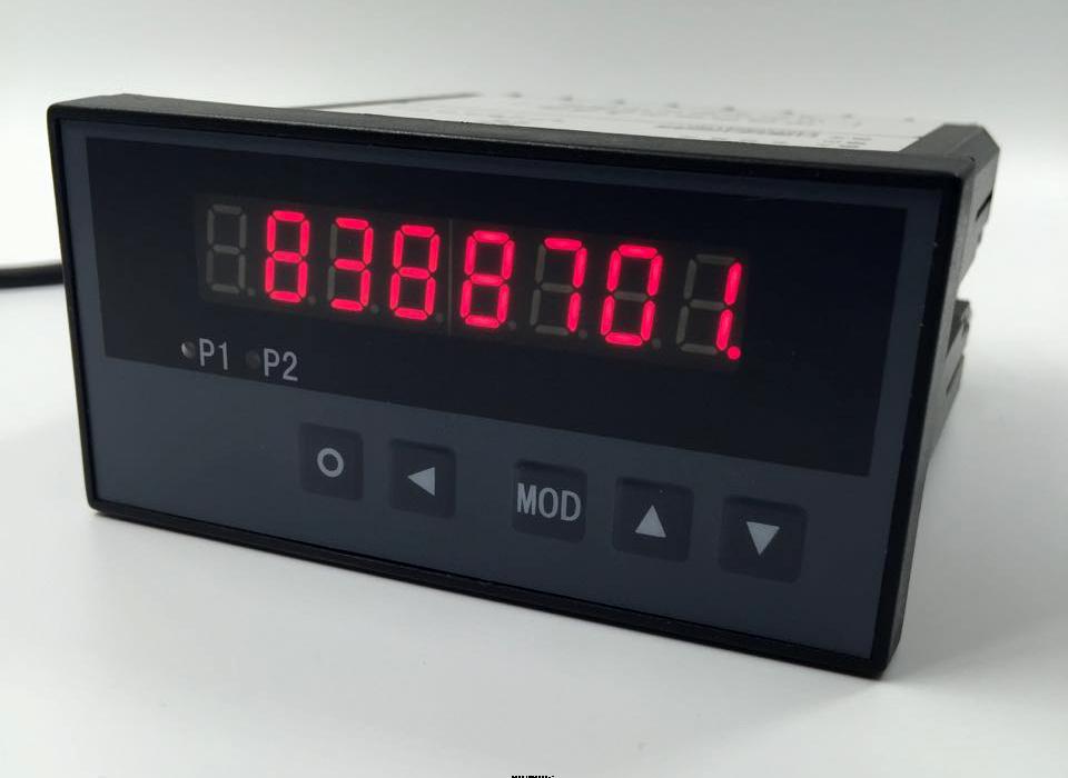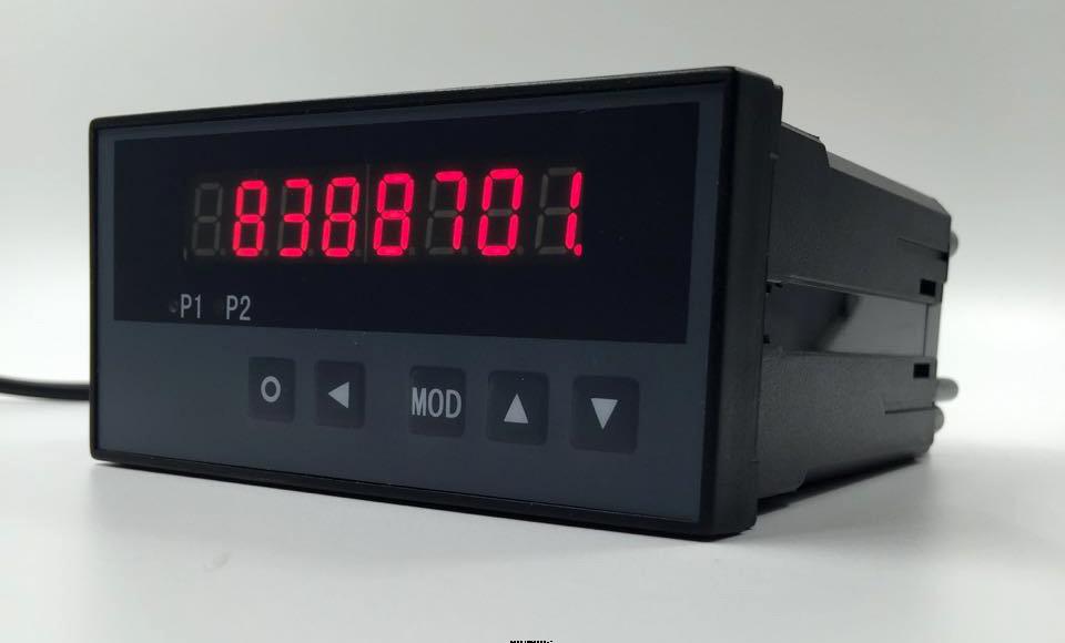 5位显示的仪表,可以选配变送输出功能及多计数比率功能。(多计数比率功能常用于多层卷缆的长度测量)